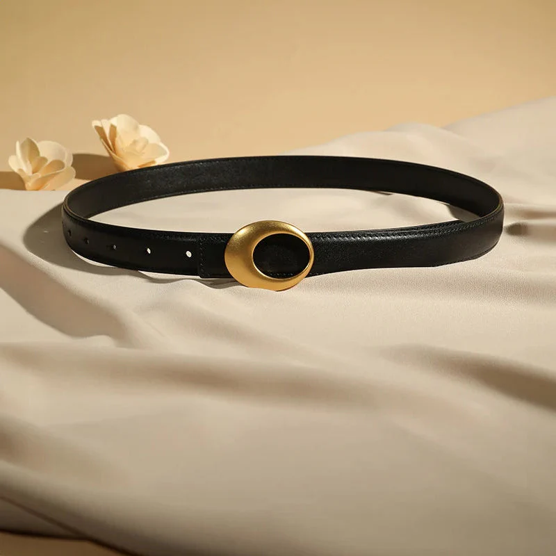 What truly sets the Madison Belt apart is its striking centerpiece: a bold, sculpted gold-tone oval buckle. This unique design element serves as a contemporary twist on a classic form, effortlessly combining luxury with minimalist elegance. The soft curves of the buckle not only provide a distinct visual appeal but also ensure a comfortable fit.
